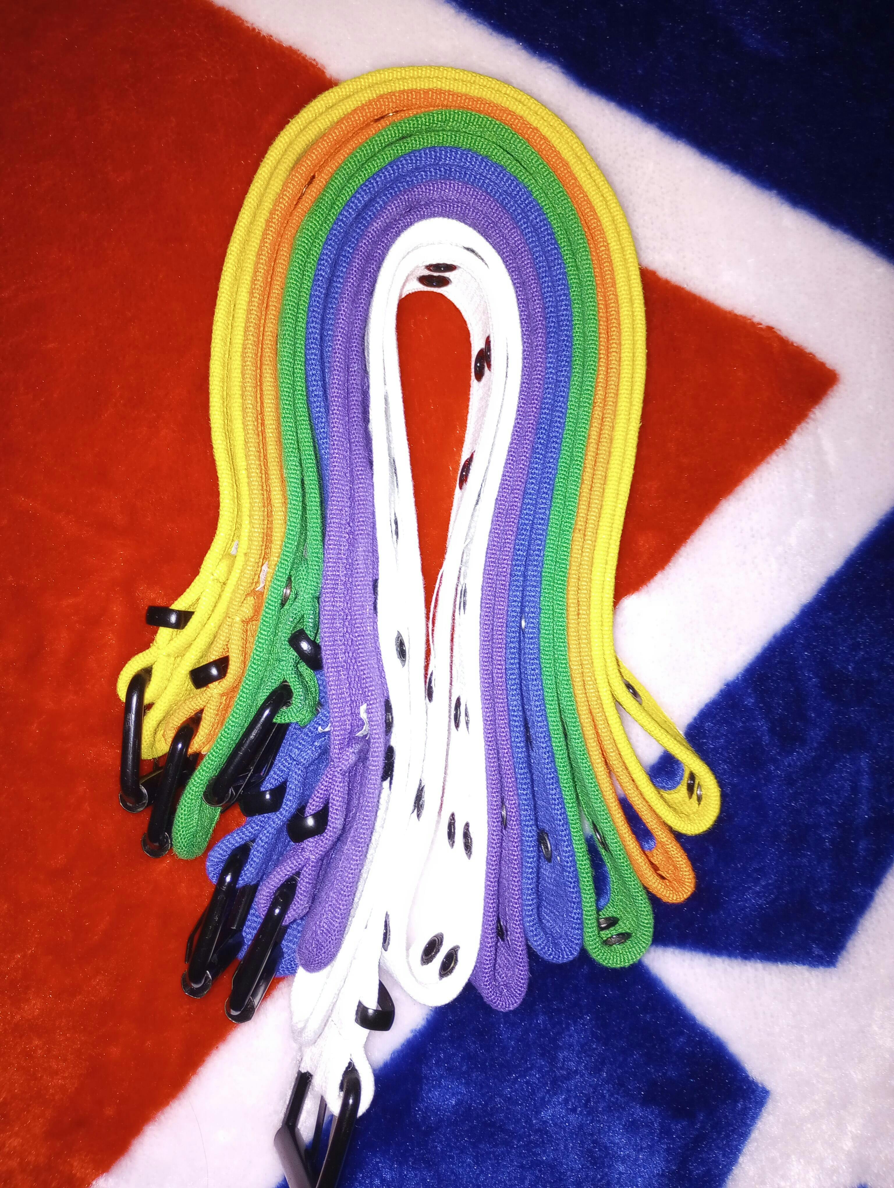 Detail time. The belt features two rows of grommets, and both the grommets and roller buckle are black hardware. The belt measures about 1.5-inches wide, which is a common belt width.