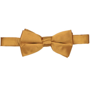 This men's antique gold bow tie features a pre-tied bow. The bow tie attaches securely around the neck via an adjustable band collar that expands to fit neck sizes from 12 to 21-inches. Shiny, satin look.