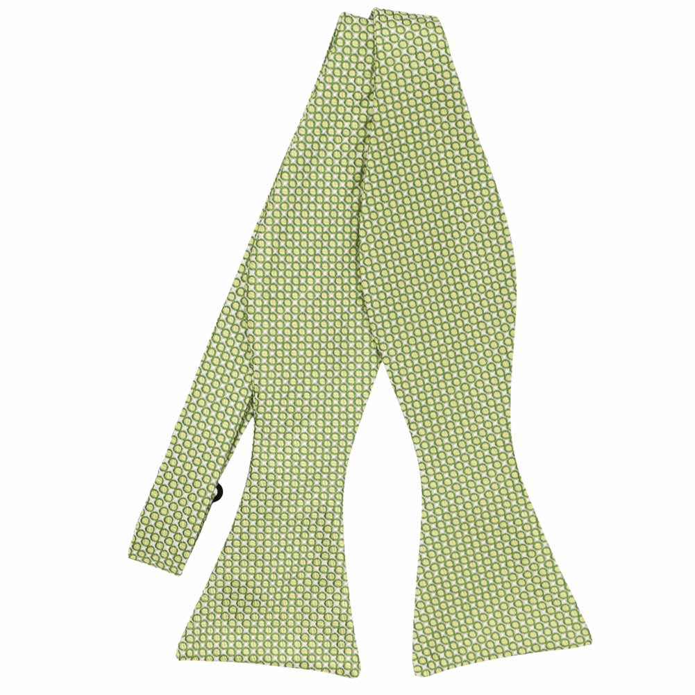 Ideal for spring, this self-tie bow tie in apple green features a subtle grain pattern that adds a fresh and refined touch to your look. The delicate, circle-like design brings a balance of sophistication and ease, making it a stand out choice for seasonal weddings, garden parties, or everyday office wear. Crafted for those who appreciate classic style with a modern twist, the self-tie design allows for a personalized fit, ensuring you look effortlessly polished. Pair it with a crisp white shirt and a light gray or navy suit for a standout spring ensemble.