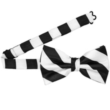 This black and white striped bow tie features a pre-tied, band collar that expands to fit neck sizes up to 19-inches. Made from all polyester microfiber, it is designed to match our bestselling men's black and white striped tie. Matching pocket squares are available to complete your look.