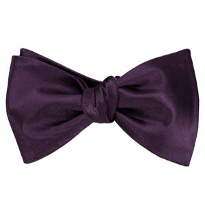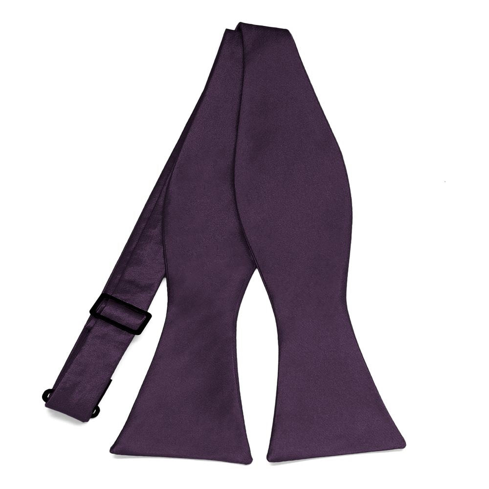 Now you can tie your own bow with this eggplant purple self-tie bow tie. Can be worn tied or untied. The adjustable band allows you to fit the bow to your neck size. See related products below for a matching cummerbund and pocket square.