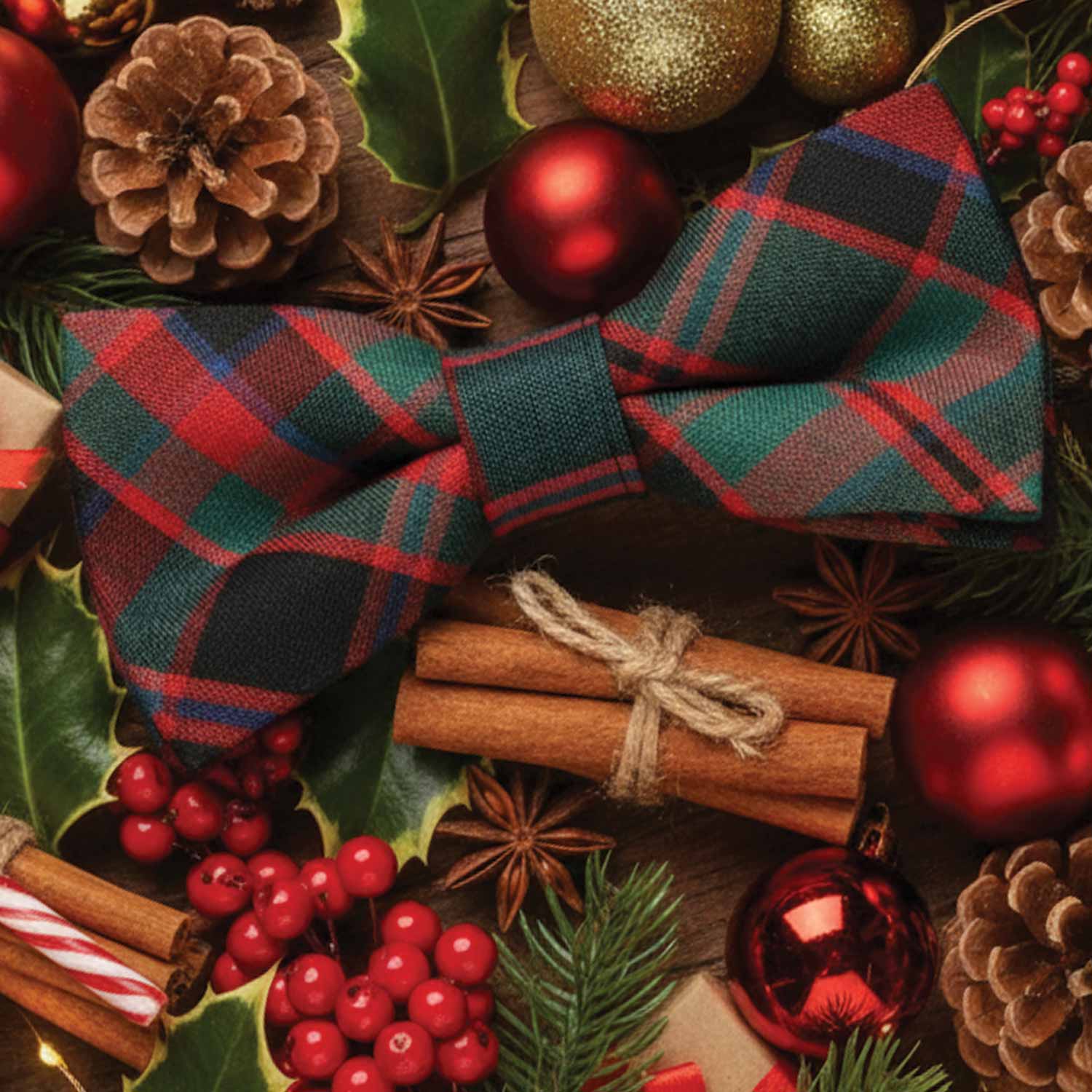 Put on this red and green plaid bow tie and get ready for the holidays. The festive pattern is just what you want to wear to Christmas dinner or your annual office party. There are matching neckties, pre-tied ties, crossover ties and children's sizes, so you can mix styles with other family members or for a seasonal group uniform.
