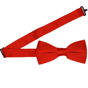 This is a popular bow tie for employee or large group attire. This men's red bow tie features a pre-tied bow. The bow tie attaches securely around the neck via an adjustable band that expands to fit neck sizes from 12 to 21-inches. (This will fit most adult and teen neck sizes.)