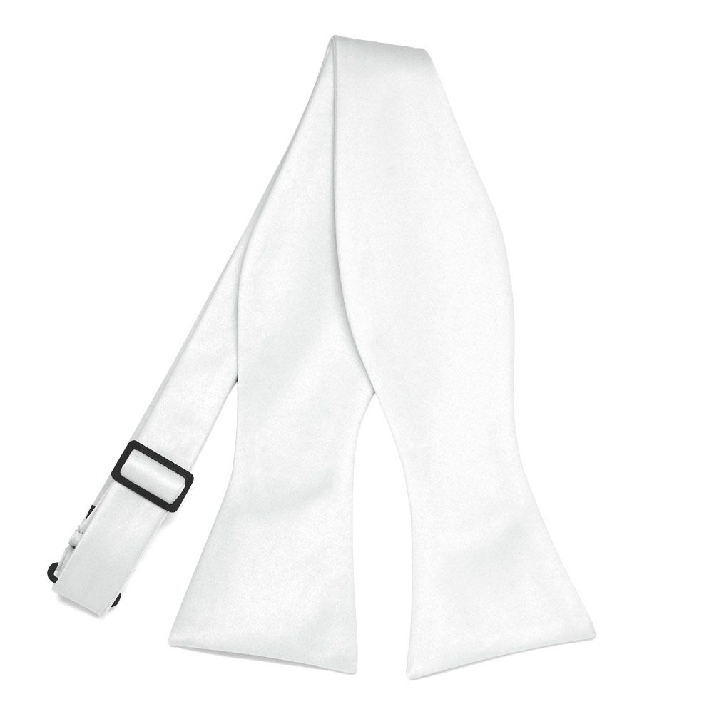 This is a self-tie bow tie, which means it must be tied by the wearer. Prior to tying, the collar adjusts to fit most adults and teens. The material is durable with a very light, but not particularly shiny, sheen.