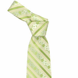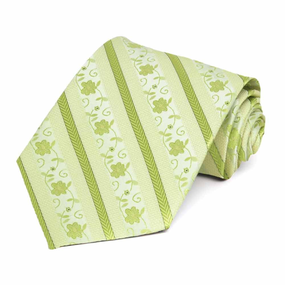 This apple green extra long tie features a mix of floral vine and textured stripe patterns for a fresh look. The subtle details add depth, making it perfect for Easter or a spring and summer wardrobe refresh. It pairs effortlessly with gray suits, offering a stylish choice for both work and casual occasions. Look for the matching pocket squares, sold separately.