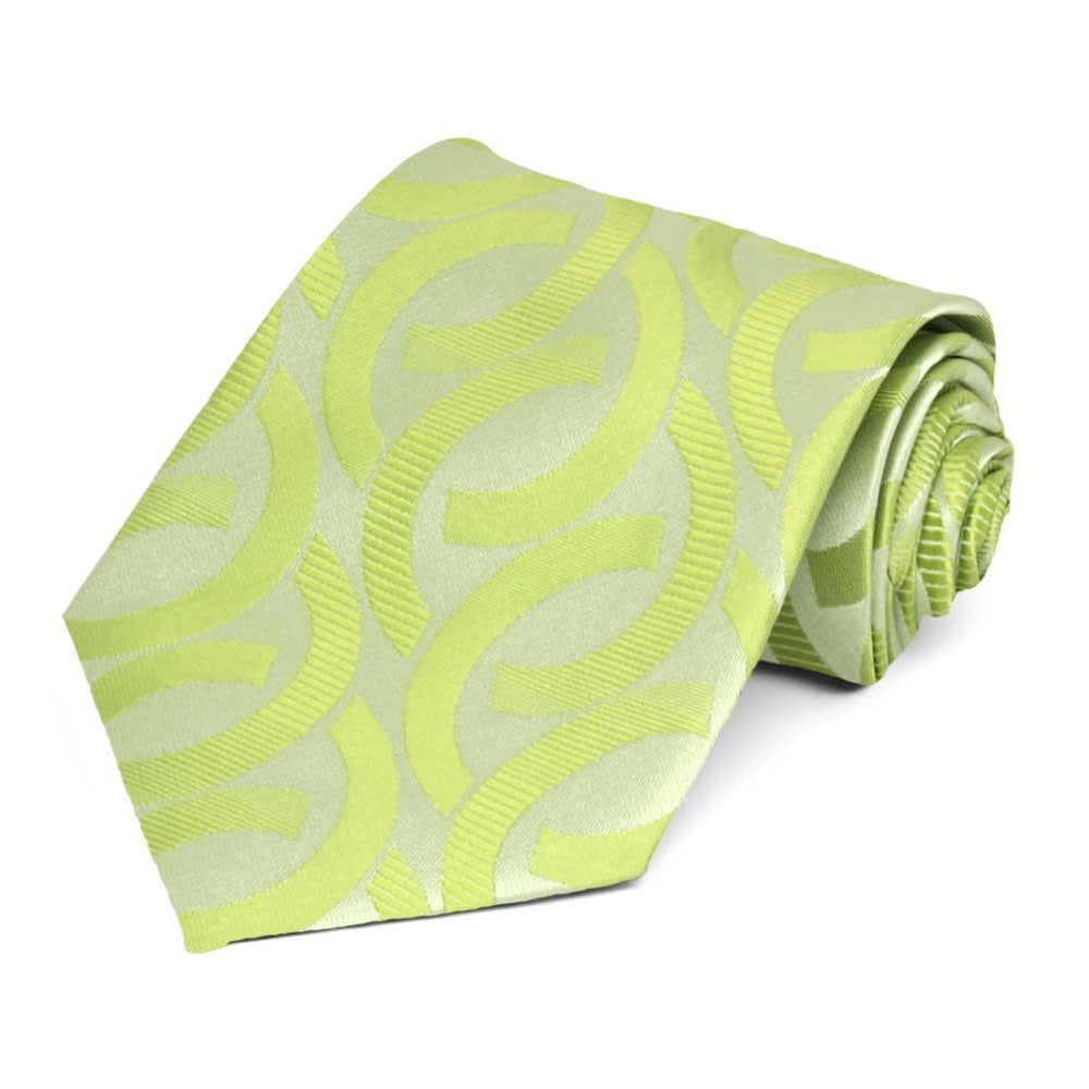 Break out the vibrant colors, warm weather is here! This apple green link pattern necktie will add a breath of fresh air to your attire after a long winter. The bright and cheery tone-on-tone greens go with any color of suit or slacks in your closet. This tie can do business casual or formal; it's up to you!