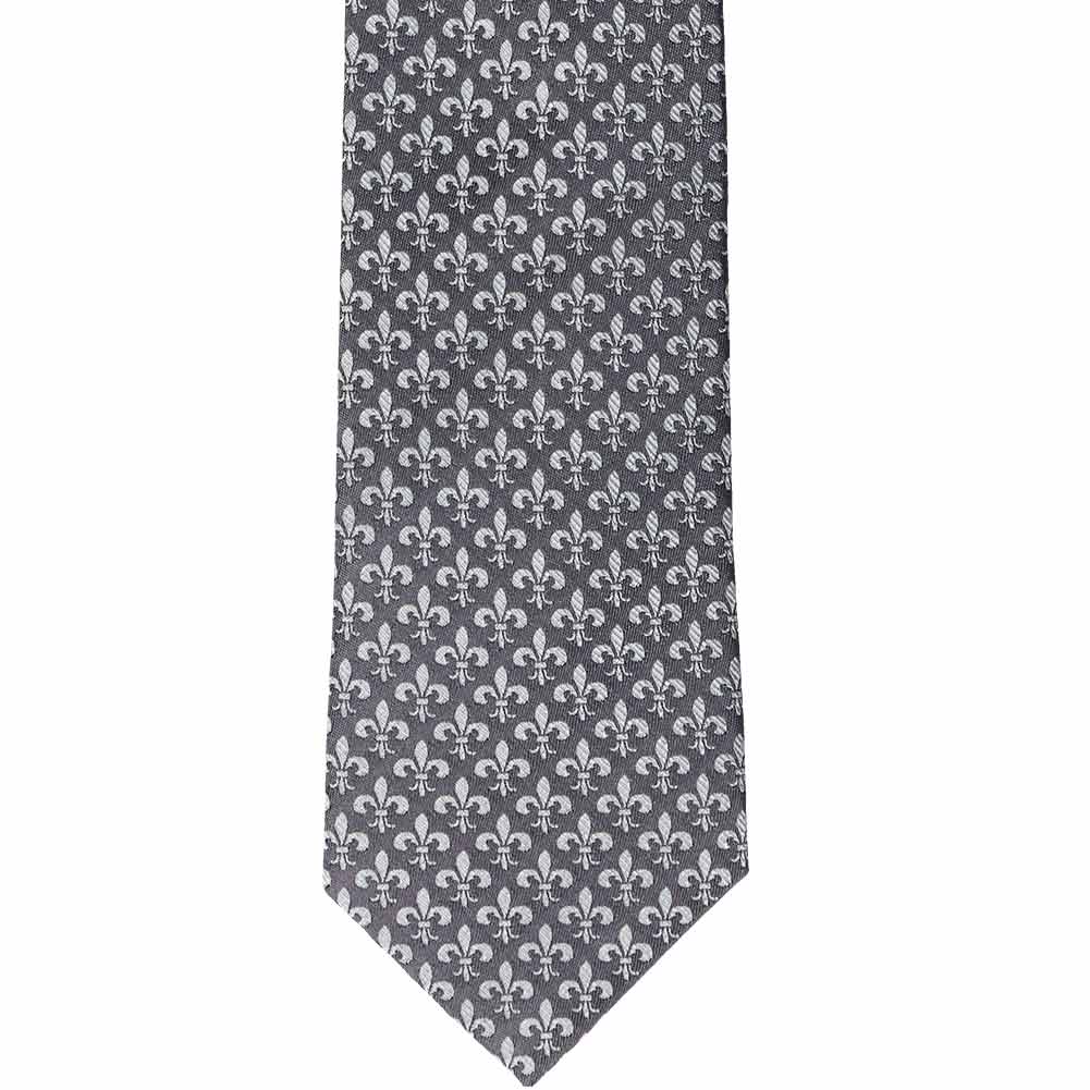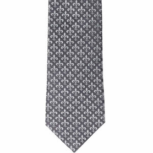 Celebrate Mardi Gras in this sophisticated fleur-de-lis tie. The pattern is conservative and upscale in dark gray on gray. Thanks to the neutral colors, this tie will look great with most suit colors, like black, gray or navy blue.