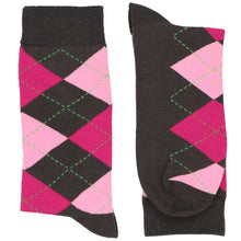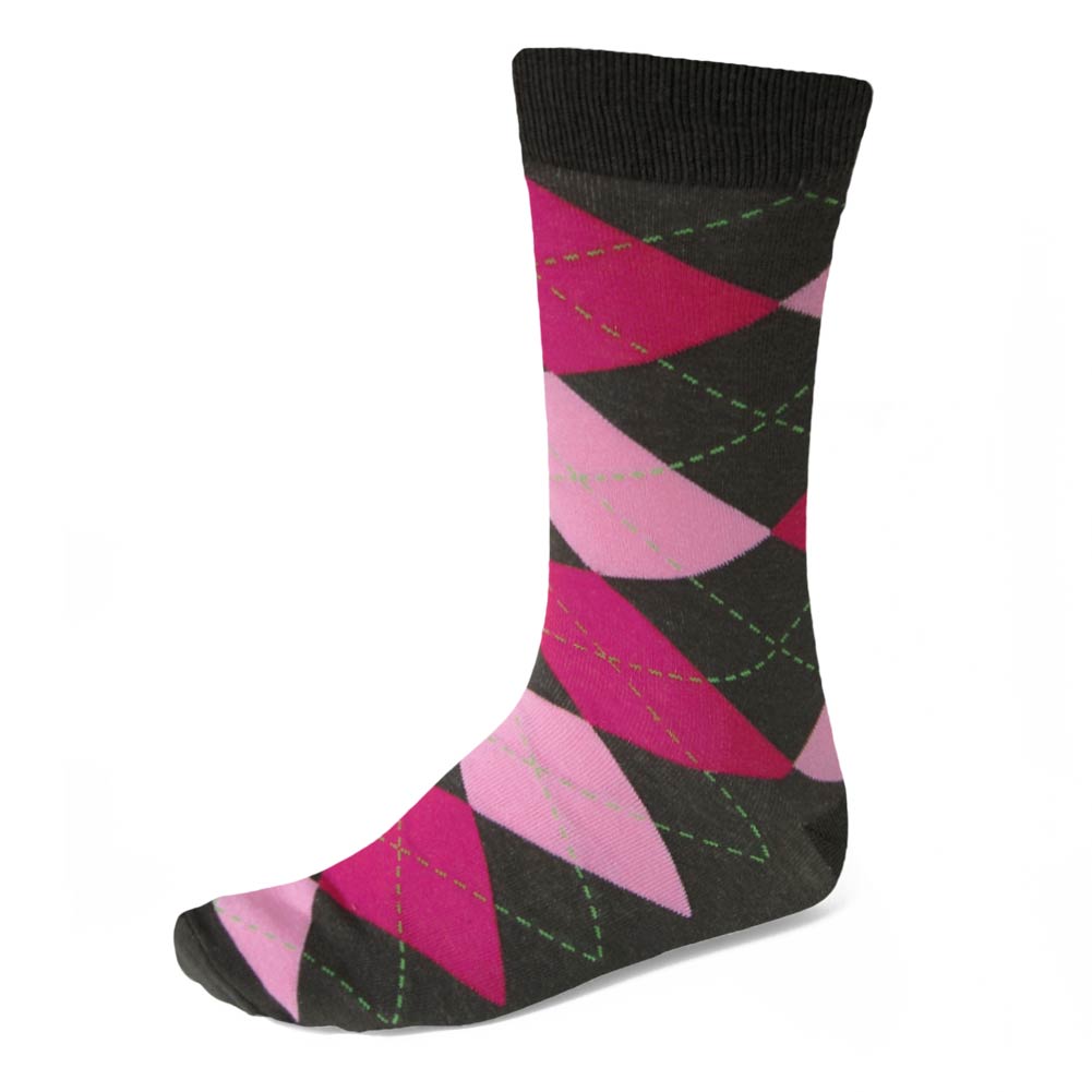 Here's a pair of classic argyle socks for men in a fun pink, fuchsia and graphite gray design. (We've added some bright green piping for pizazz.) Argyle socks are always our favorite choice for business attire, but this color combo is great for weddings and special events like Valentine's Day or Breast Cancer Awareness Month.