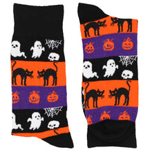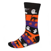 These spooky socks will make a fun addition to your Halloween collection. The design features a little bit of everything: Creepy blacks cats, ghoulish ghosts and menacing jack-o'-lanterns! You'll have no trouble matching the black, white, orange and purple colors.
