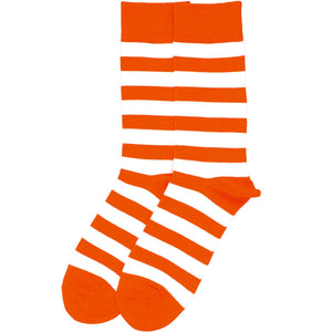 Watch out! Go for a bold look in these orange and white striped socks. This bright but basic combination will stand out at a school or sporting event. Don't be afraid to walk into the office in these socks either.