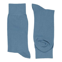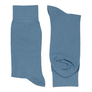Complete your wedding with serene blue socks for the groom and groomsmen. These socks are a dusty blue shade that we made to match our serene premium ties. They're a smooth, solid color dress sock in a crew height. Dusty blue hues are easy to match, but think these men's socks look best paired with navy blue or gray suits.