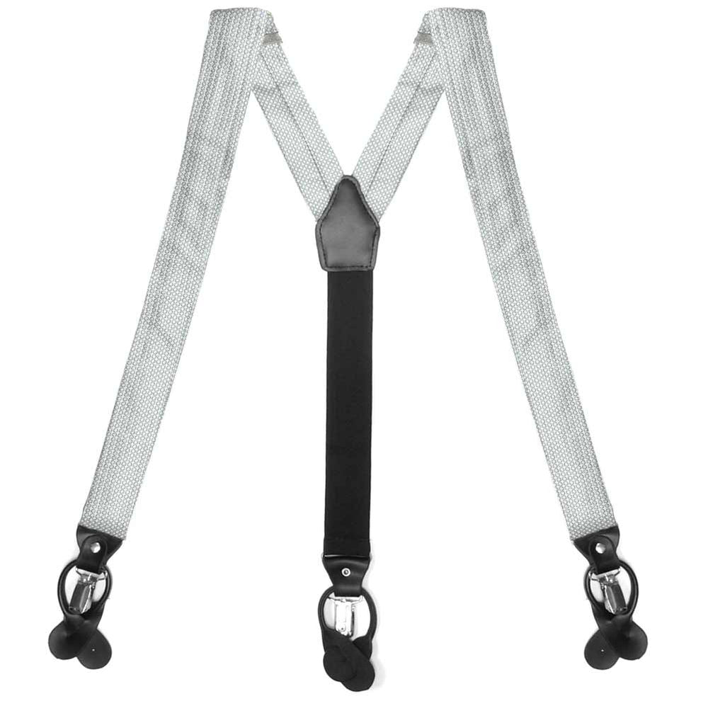 Take your style up a notch with these versatile soft gray suspenders—perfect for formal occasions or adding a dapper touch to your everyday look. The subtle circle-inspired design adds just the right amount of texture and sophistication, making them suitable for weddings, business events, family gatherings, or casual outings. Crafted for both comfort and style, these suspenders pair seamlessly with our popular line of grain pattern ties and accessories, ensuring a polished and coordinated ensemble.