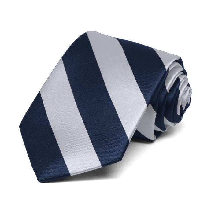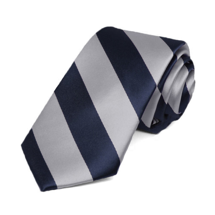 Navy Blue and Silver Striped Slim Tie, 2.5" Width