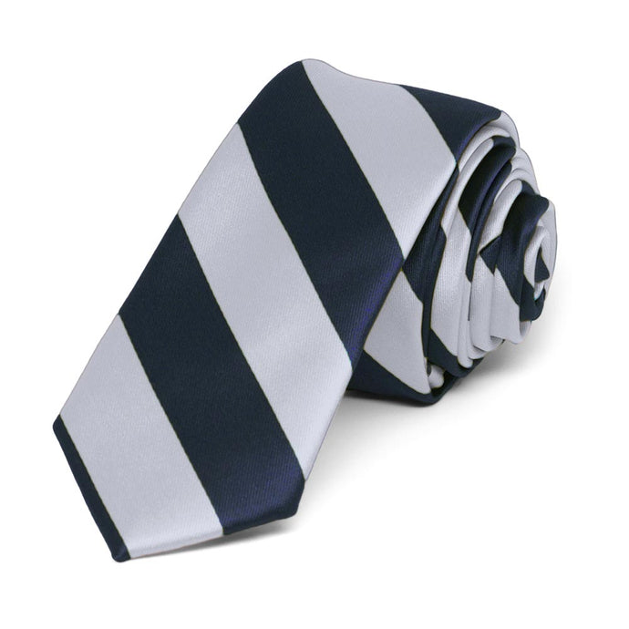 Navy Blue and Silver Striped Skinny Tie, 2" Width