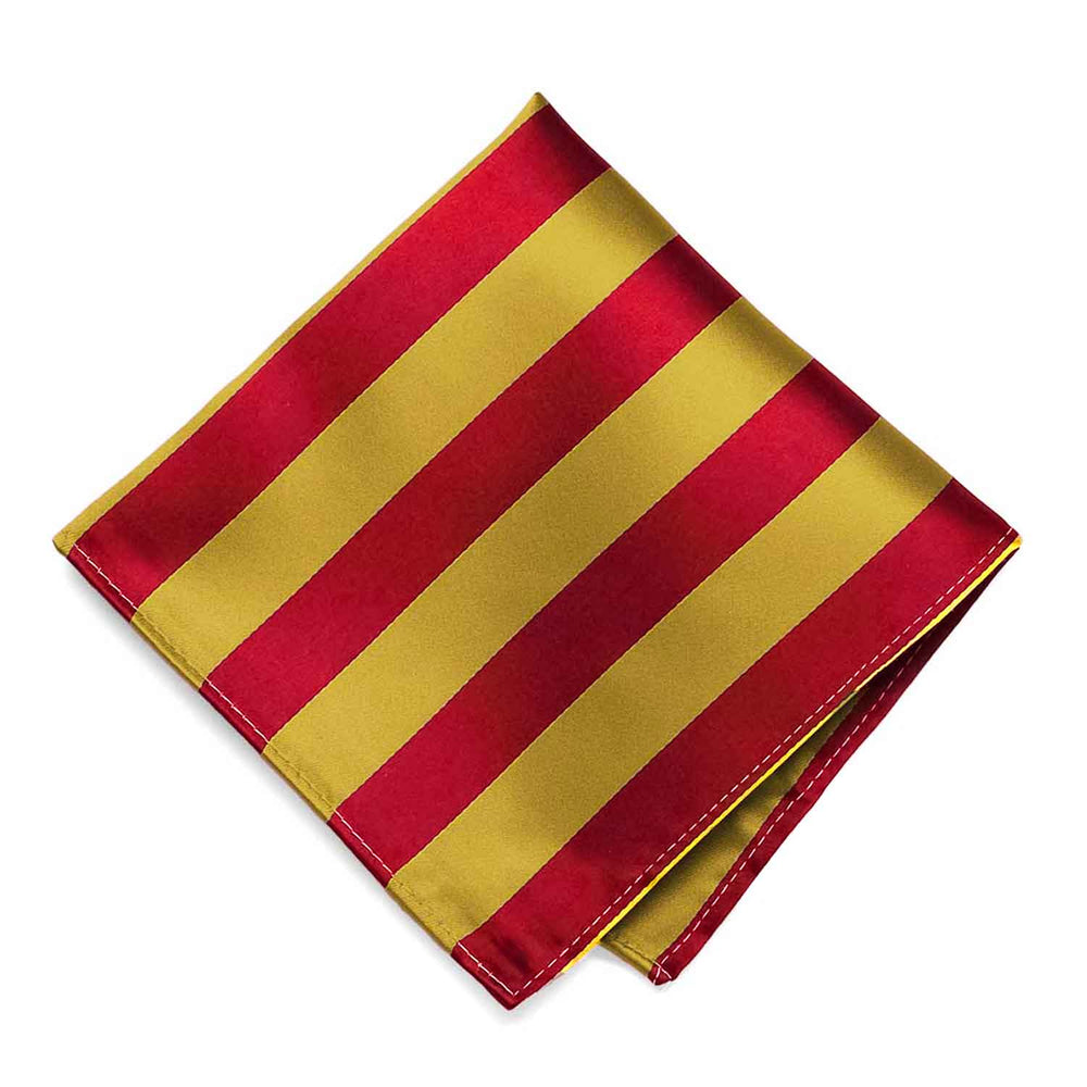 Get ready to showcase your school pride with this red and gold striped pocket square! Featuring stripes at the ideal width of 0.75 inches, it's the perfect accessory for graduation, school photos or any time you want to add a touch of spirit to your outfit. Versatile enough to pair with any suit color, making this pocket square a must-have. Don't forget to check out the matching neckties, available separately, to complete your look.