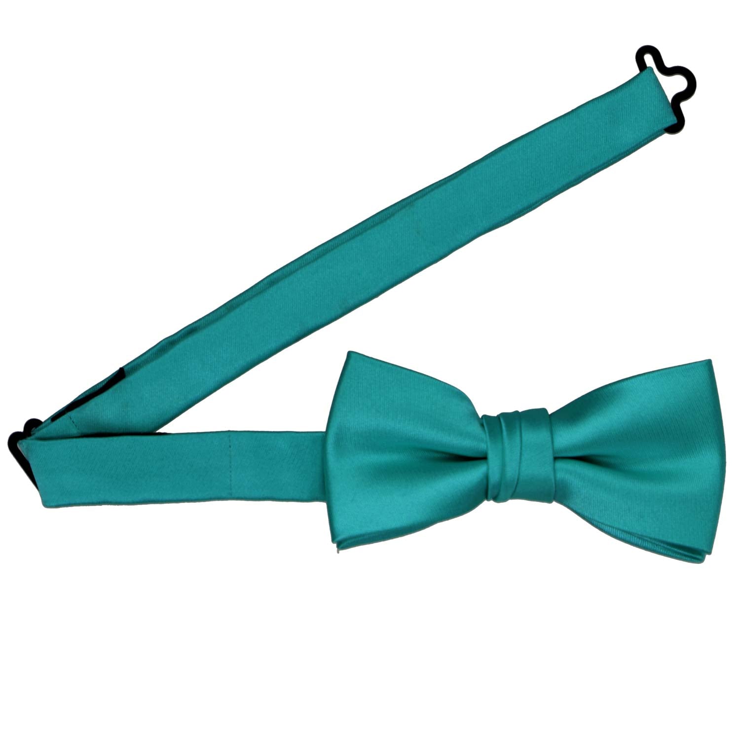 Get ready to swoon over our premium collection. Just like our men’s sizes, the material on this bow tie has a gorgeous sheen that is suited for formal occasions. (We wouldn’t consider it a particularly shiny bow, but it’s not matte either.) This bow tie is already tied and easy to use. There is an adjustable band that goes around the neck and closes via a metal hook. (We’ll get to sizing on that band in a minute.)