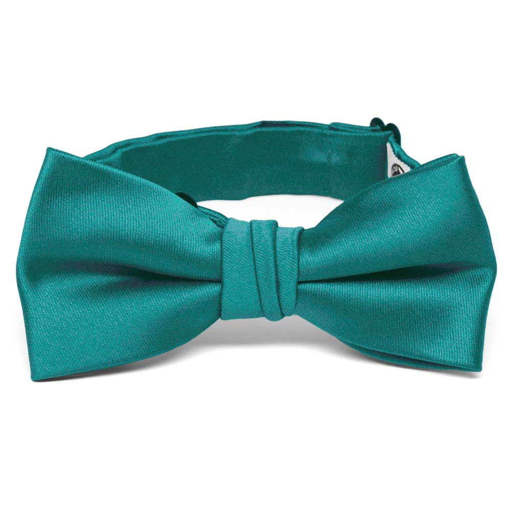 Add a pop of elegance to your jewel-tone wedding with this boys' oasis bow tie. The rich blue-green hue is the perfect statement piece, whether paired with modern gray or navy blue groomsmen suits for a contemporary vibe, or with classic black suits for a timeless look. Want to mix and match tie styles among your wedding party? No problem—this versatile color comes in a variety of men's styles, lengths, and widths.