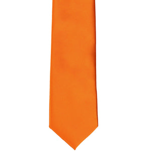 You'll fall in love with the premium look and feel of our collection. This orange slim tie is cut to a 2.5-inch width and a 57-inch length that suits the average man. The heavyweight woven material is adorned with a smooth satin finish that isn't too shiny.