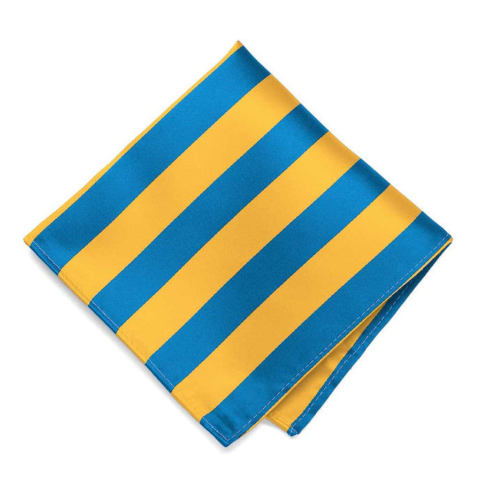 Peacock Blue and Golden Yellow Striped Pocket Square
