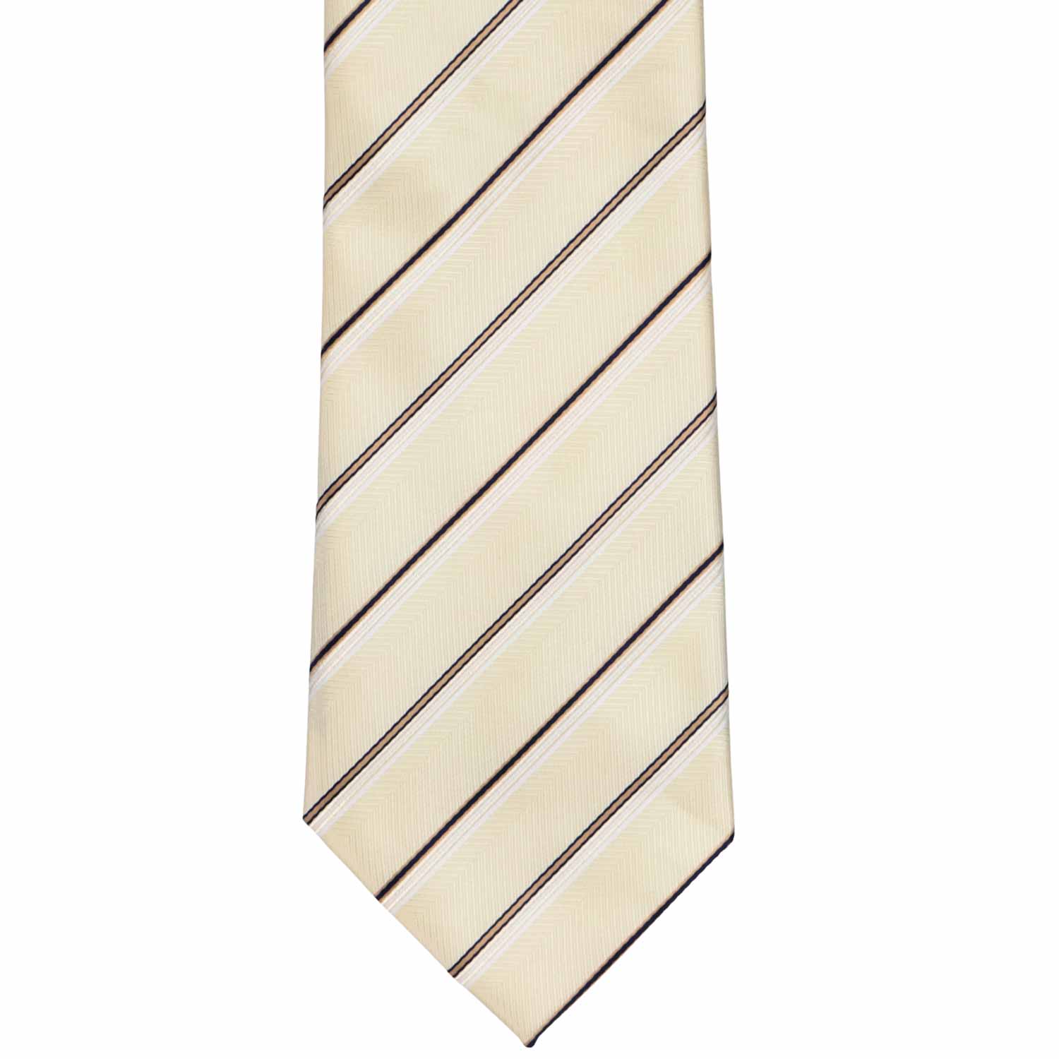 Your new go-to striped tie has just arrived and it has everything you've ever wanted in a tie. From fashion-forward tan and white stripes to durable material, you can't go wrong when adding this piece to your wardrobe. A matching pocket square is included for the finishing touch on your attire.