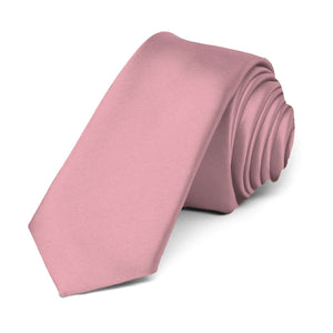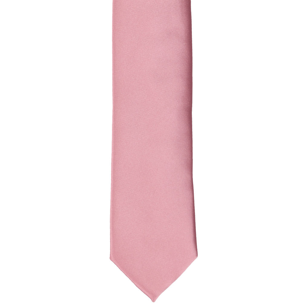 This skinny tie is part of our premium collection, which you'll love. The trendy, 2-inch width is paired with a 57-inch length for the average man. The material is a thicker weight with an elegant sheen that's neither too shiny nor too dull.