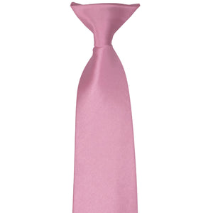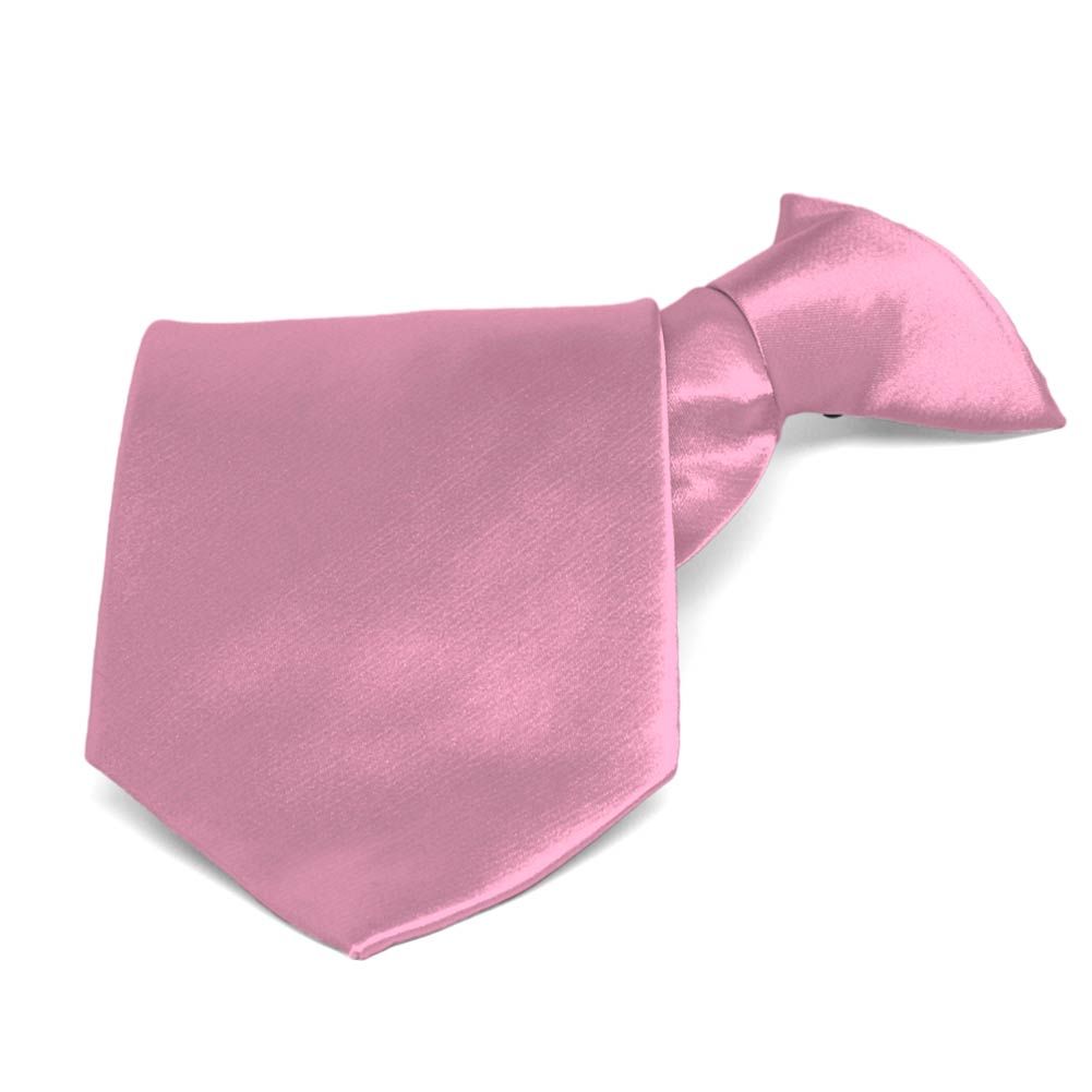 This antique pink solid color clip-on tie features a pre-tied knot for easy use. It is made of durable, 100% polyester with a satin finish. Though sized for men, the 3.5-inch width is equally versatile for women and teens. Popular for individual use, but the pre-tied style makes it a favorite for large group or staff attire.