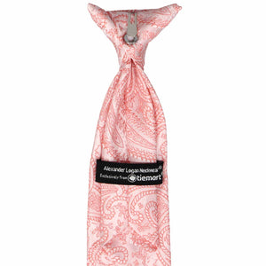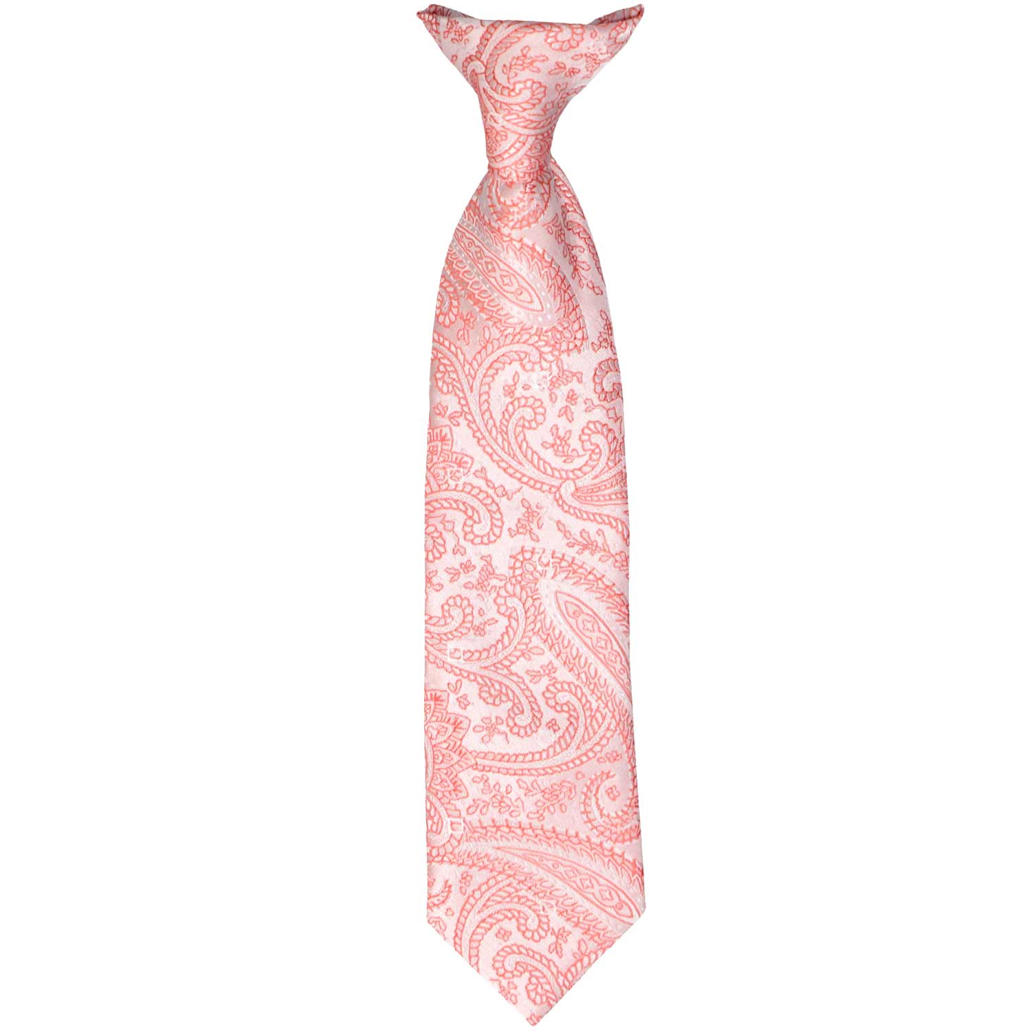 He'll stand out in style with this charming coral paisley boys' clip-on tie! The mix of light and dark coral tones adds a playful yet polished touch, making it a perfect choice for weddings, Valentine’s Day, and special occasions. Whether he's a ring bearer or celebrating with friends, pair it with a navy or dark gray suit for a dapper look that’s sure to impress.