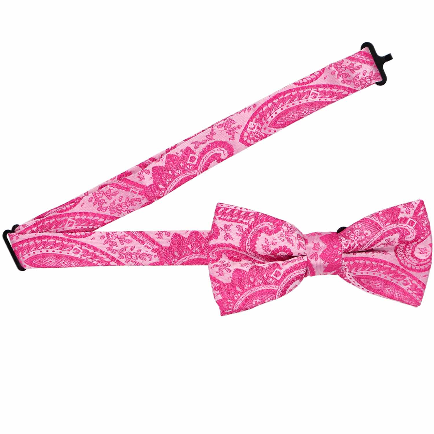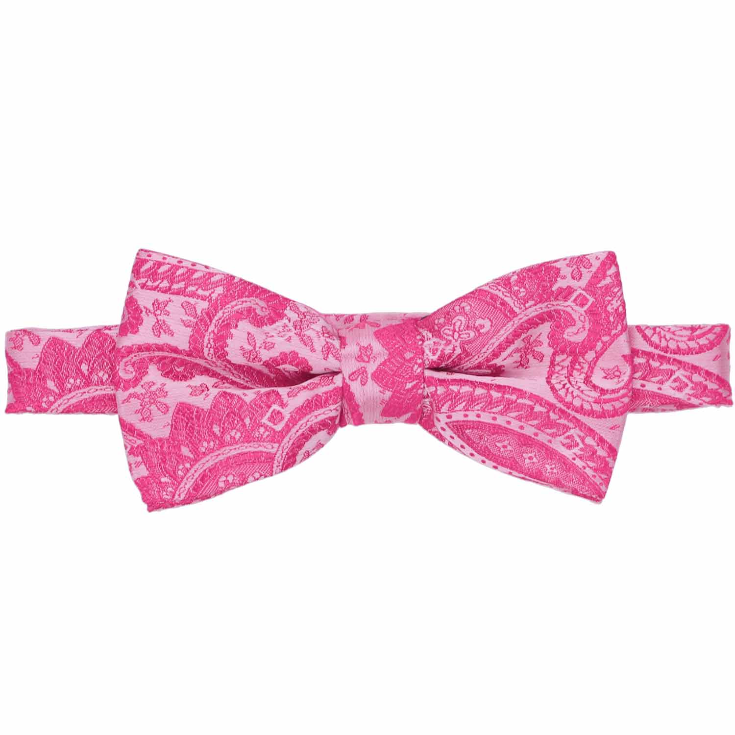 Add a bold touch to your next formal event with this bright fuchsia paisley bow tie. Popular for weddings and Prom, its classic tone-on-tone pattern is as versatile as a solid color tie, making it easy to pair with various outfits. Complete the look with a matching pocket square and skinny suspenders (sold separately) for a polished finish.