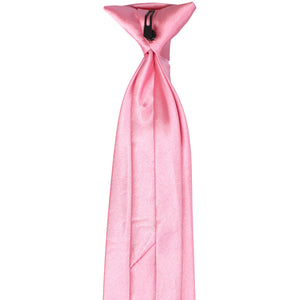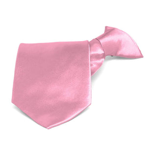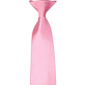 This bright pink solid color clip-on tie features a pre-tied knot for easy use. It is made of durable, 100% polyester with a satin finish. Though sized for men, the 3.5-inch width is equally versatile for women and teens. Popular for individual use, but the pre-tied style makes it a favorite for large group or staff attire.