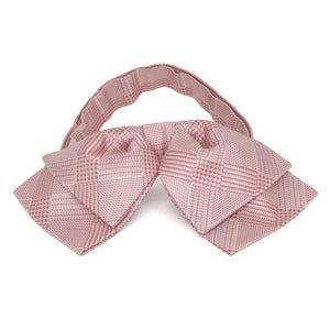 Exclusively ours! A pre-tied, floppy bow tie in a stylish cameo pink Glen plaid design. The band collar adjusts to fit most men and women. Suited for matching women's uniform wear or men's vintage-inspired attire.