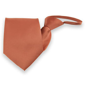 Go for a tropical look! This palm coast coral solid color zipper tie is pre-tied and easy to use. When worn, it will look like a standard necktie. However, a zipper in the tie tail allows the collar to quickly expand and fit over the head without having to tie a knot.