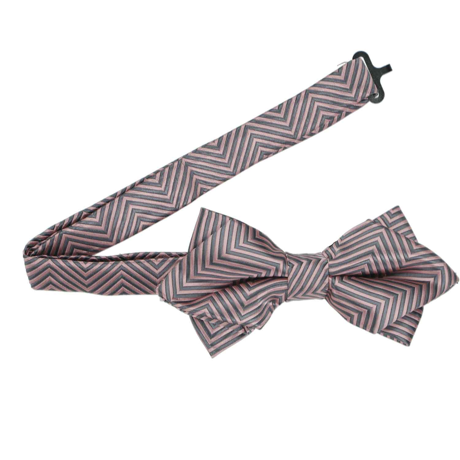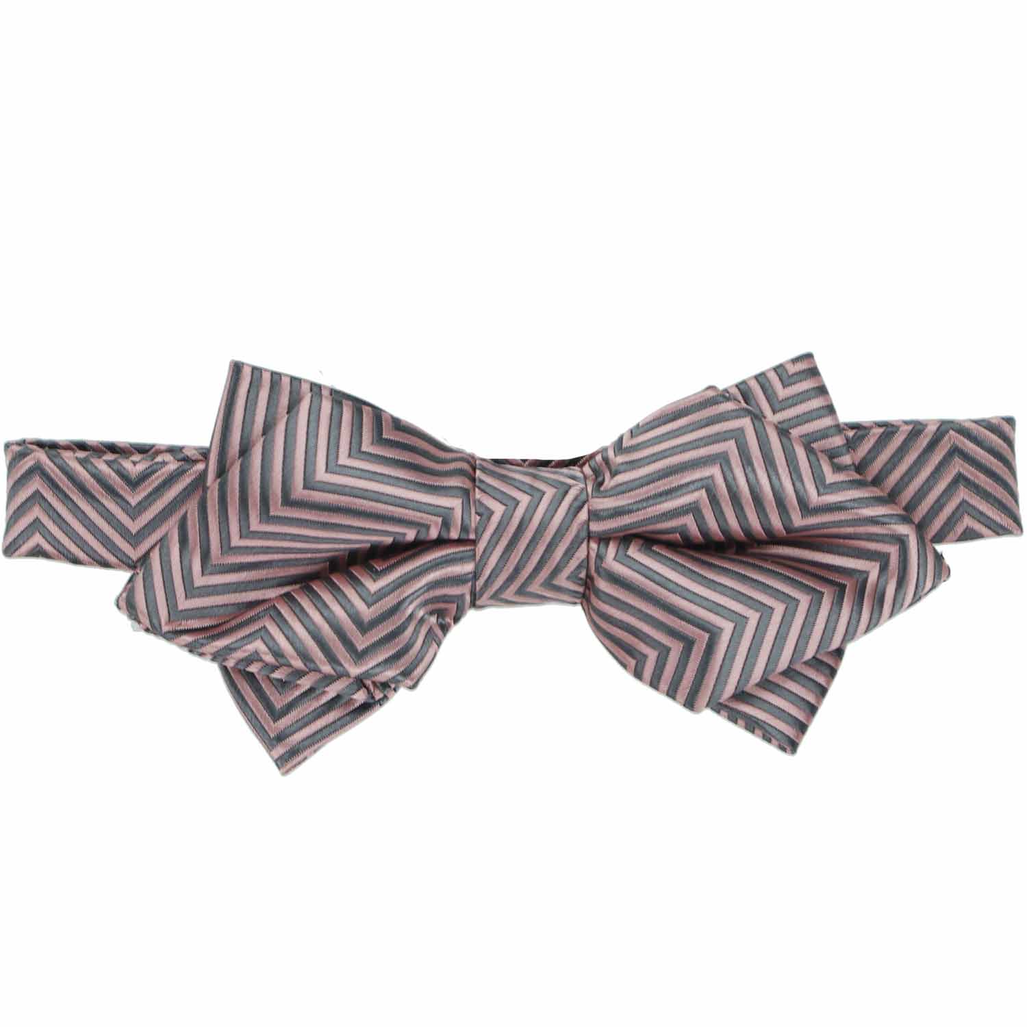 Try something new with this elegant soft pink chevron pattern diamond tip bow tie. The textured design adds depth and sophistication to the subtle color palette, making it a versatile accessory for both casual and formal occasions. Pair it with slacks and a button-down shirt for a relaxed office style, or elevate your look with a charcoal gray suit for a polished, refined appearance. For a stylish finish, complete the ensemble with the matching pocket square, adding an extra touch of color and flair to your outfit.