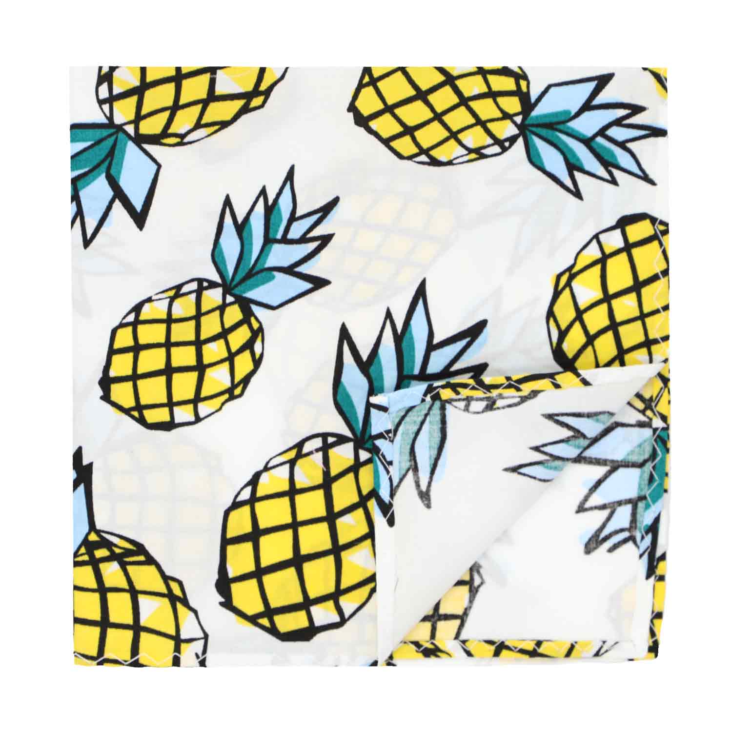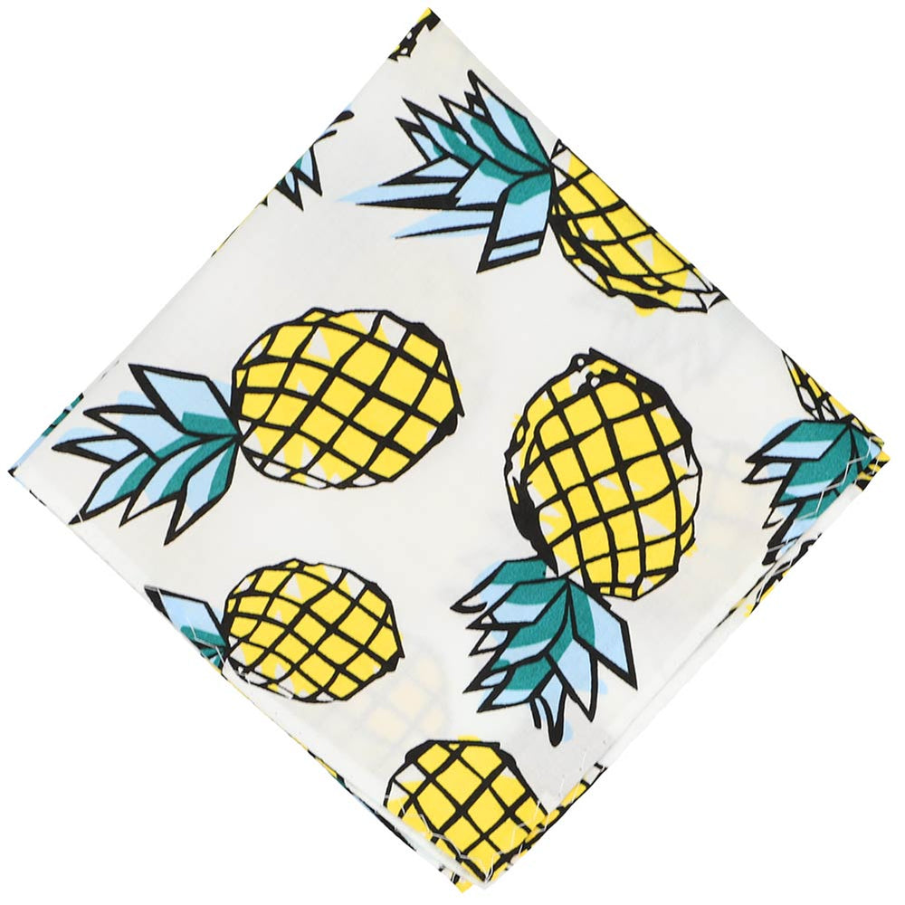 Wear to work, to play or everyday! This pineapple pocket square will be the most novel one in your wardrobe. The pattern is on a large, 12-inch by 12-inch square to suit a wide variety of folds. It's made from 100% cotton, too. Matching ties and bow ties available for purchase. Or, use it to contrast against a solid color tie. A great accessory to complete your look!