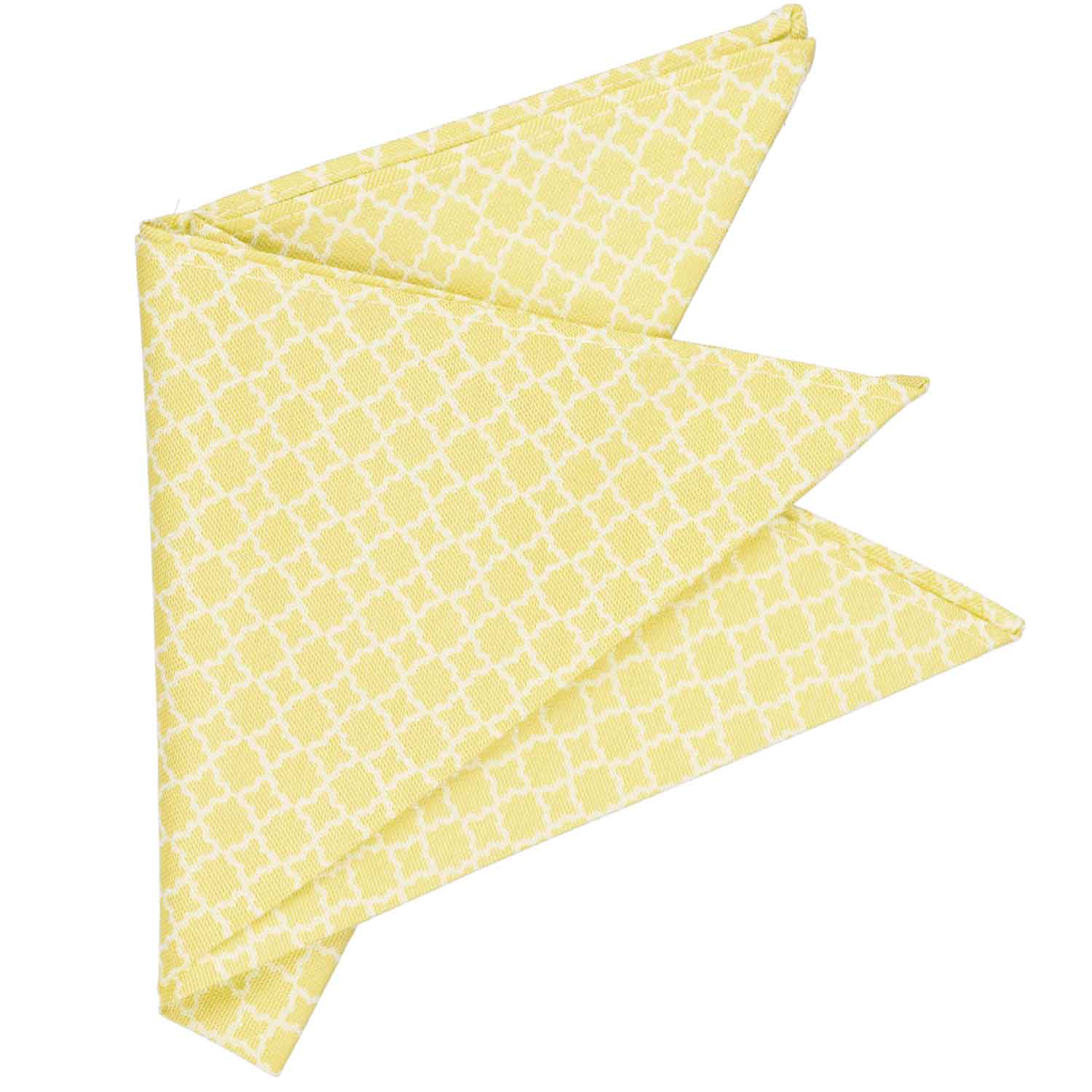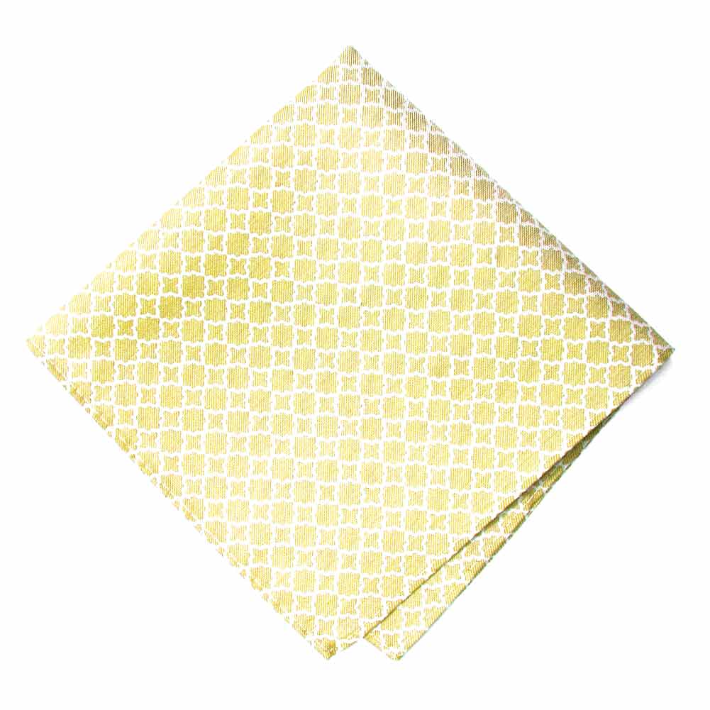 You know this pattern from home design, but wow, does it look good on a pocket square! Add a pop of color and sophistication to your attire with our yellow Moroccan trellis pocket square. The mellow hue is easy to mix into your existing wardrobe, but it comes in matching neckties and bow ties if you prefer a perfectly coordinated look.