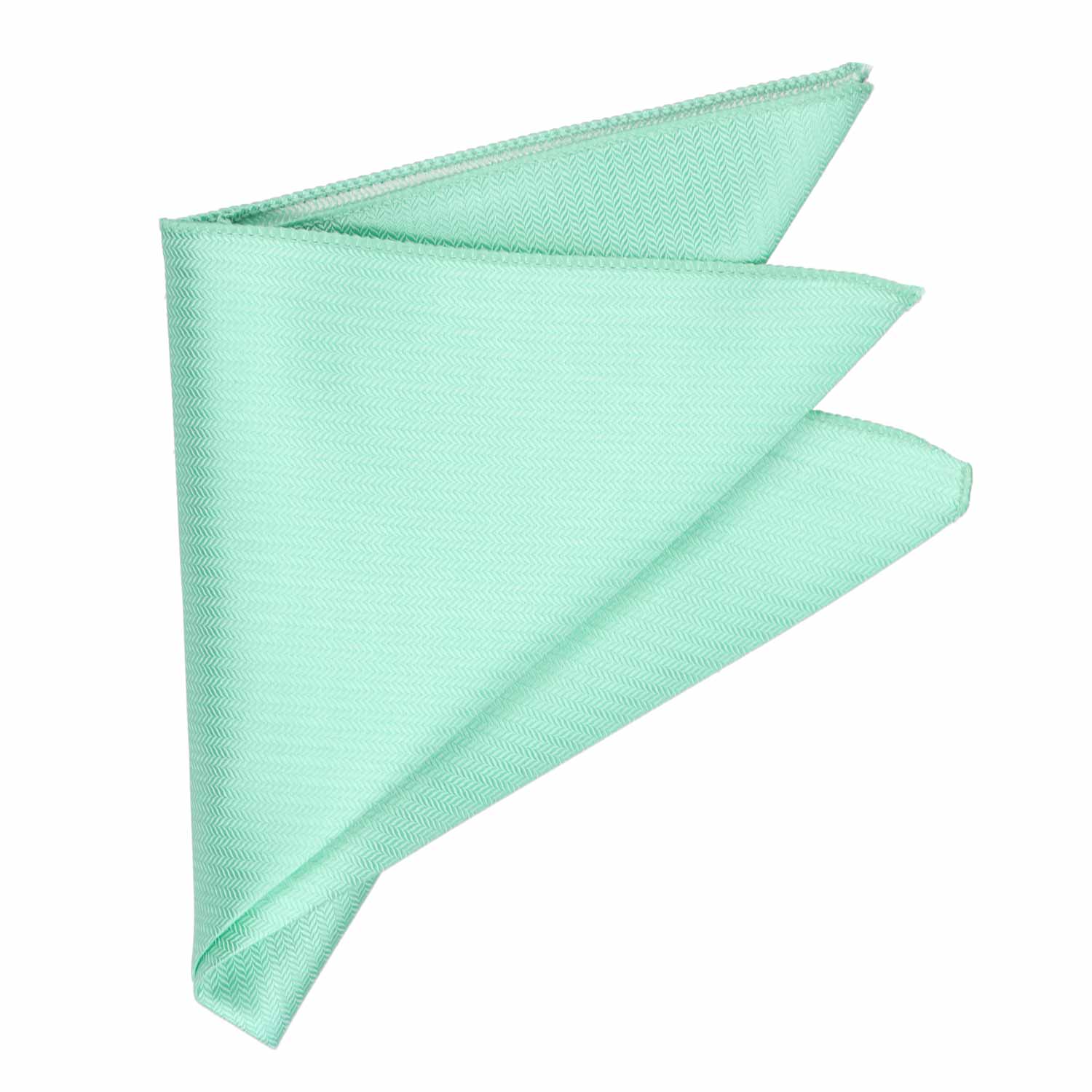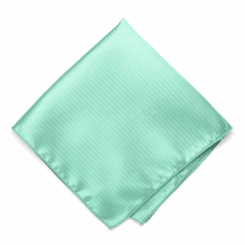 Accent your wedding day with this herringbone pocket square in spa (it's a light and minty blue/green). The pattern is a subtle tone-on-tone weave, so it's as easy to mix into an outfit as a solid color pocket square. Use it to accent a groomsmen's floral tie or add interest to their solid white or ivory tie.
