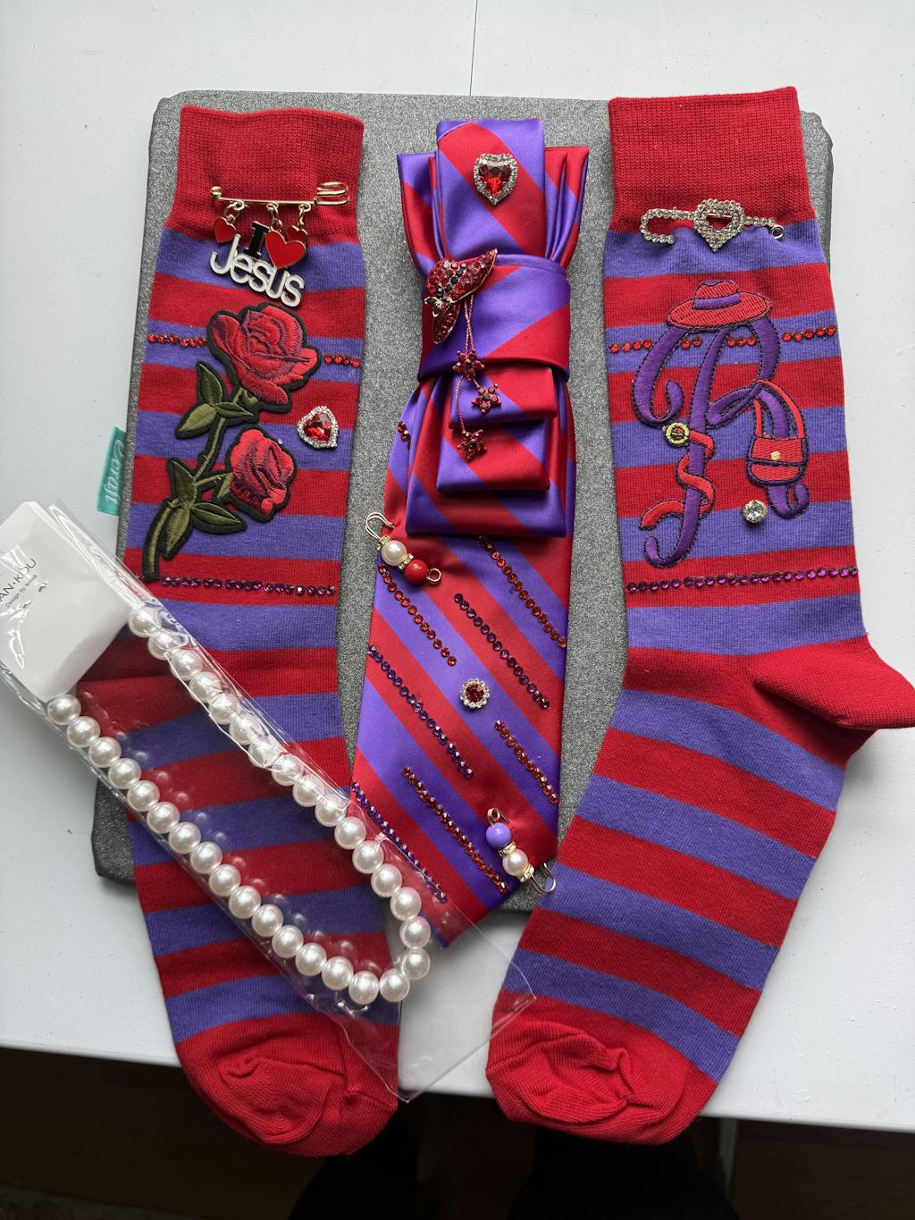 Consider this dark purple and gold striped tie for your school, sports team or company uniform. The stripes measure 0.75-inches wide and are the perfect preppy but bold combo. You'll want to purchase the matching pocket square to add to your suit jacket for those upscale events that require a dress code. Take your look a step further and purchase the matching socks to look coordinated from neck to toe.
