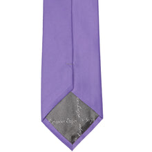The front of a light purple solid tie, laid out flat