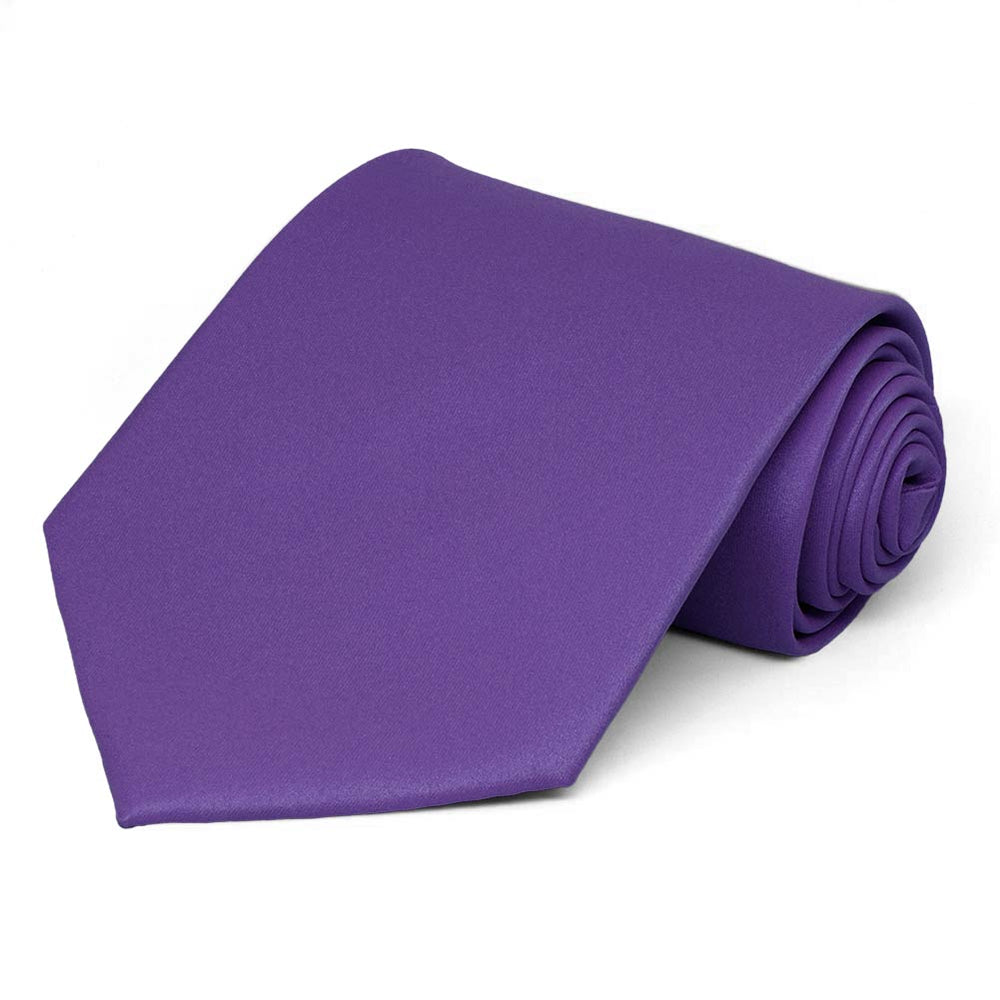 This medium purple tie is just the right mid-range purple. It doesn’t lean too light or too dark. Our customers are wearing this tie for work, formal occasions like weddings and large group or uniform wear. (When the occasion is dressy, we have matching pocket squares available for purchase.) The solid color means it’s easy to match, too. Try wearing it with gray, black or even navy blue apparel.