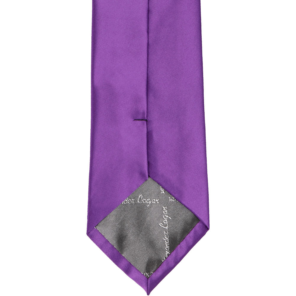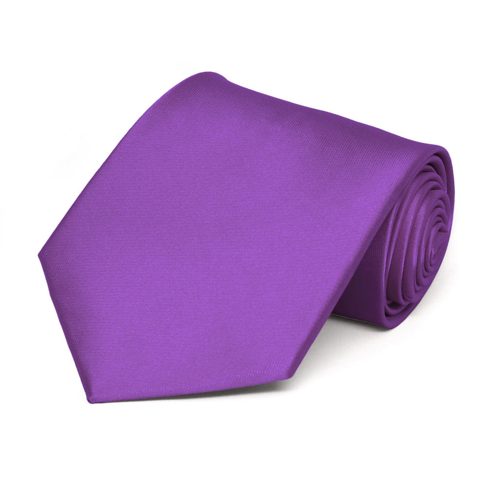 This men's plum violet solid color tie is part of our bestselling line of neckties. It's traditional in a 3.5-inch width and 57-inch length. We made it from heavyweight woven material with slight ribbing. It's finished with a not-too-shiny or too dull satin finish.