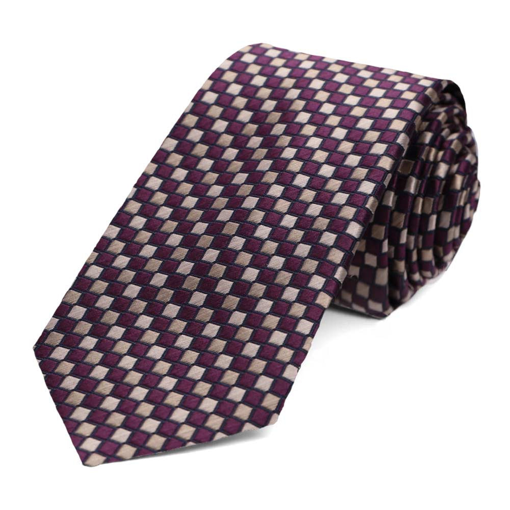 Try something different with this slim, eggplant purple geometric tie. The rich, dark purple lends itself to darker suits. Pair it with a dark gray suit, or wear it with a lavender button down shirt and dark jeans for a casual look. A matching pocket square is included for occasions when you need a more formal look.