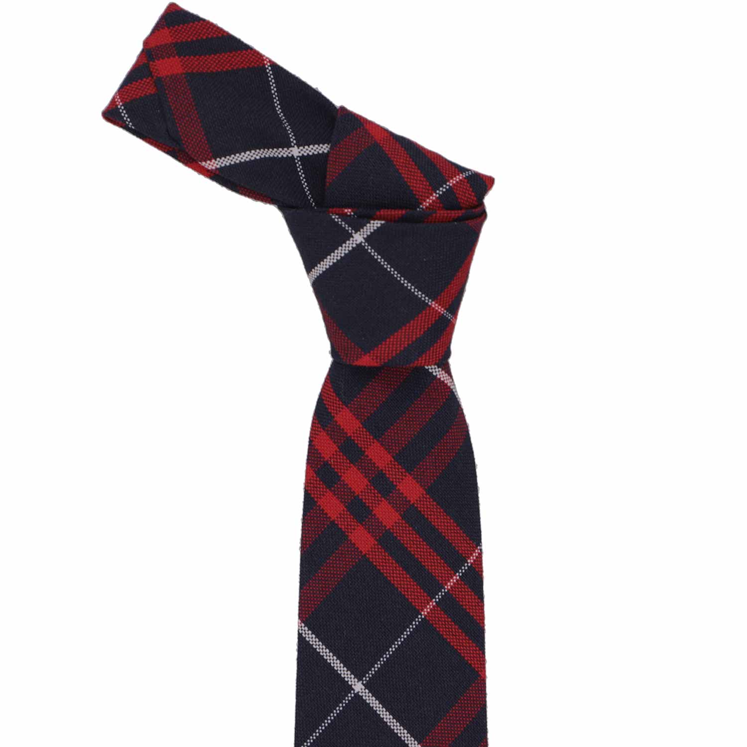 Ready, set, go back to school in this red and navy blue plaid tie. The classic pattern is designed to match your school colors. There are matching bow ties, pre-tied ties and crossover ties in this plaid, so it's easy to mix tie styles among a large student body.