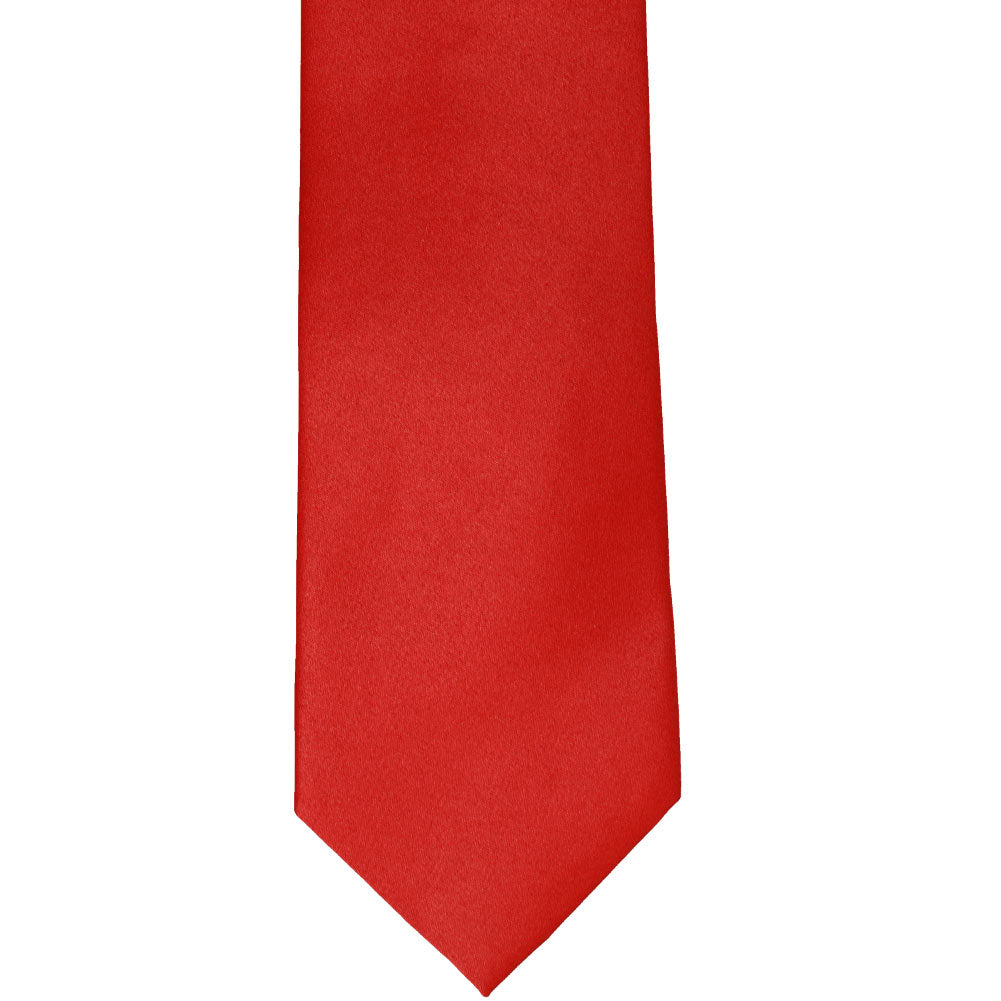 This red solid color clip-on tie features a pre-tied knot for easy use. It's made of durable, 100% polyester with a light satin finish. Available in three lengths for men, women and teens. Popular for individual use, but the pre-tied style makes it a favorite for large group or staff attire.