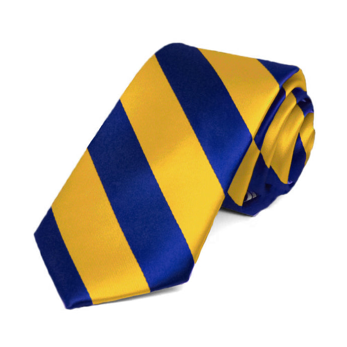 Royal Blue and Golden Yellow Striped Slim Tie, 2.5" Width
