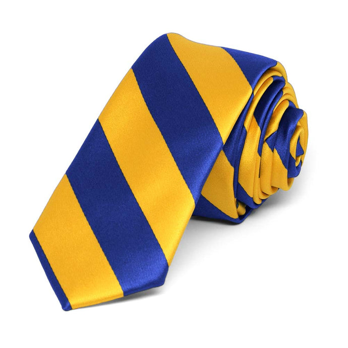 Royal Blue and Golden Yellow Striped Skinny Tie, 2" Width