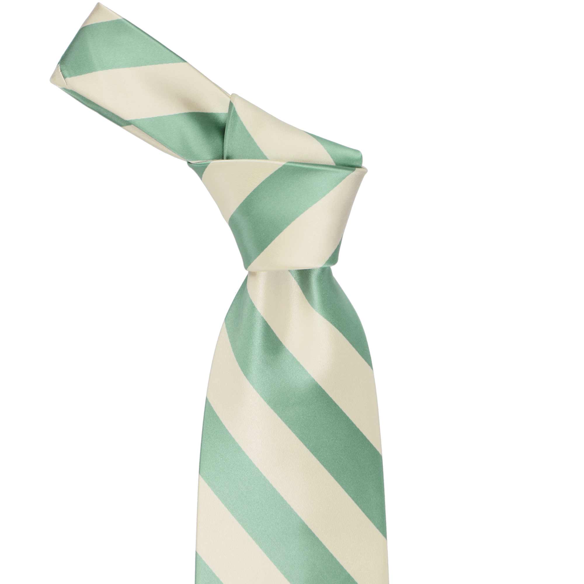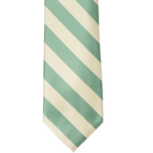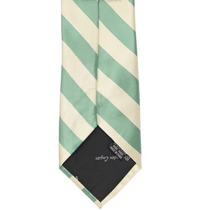 This key largo green and cream striped tie provides a subtle color, but fun, combo that is popular for stylish everyday attire. The classic 0.75-inch stripes are the perfect width for getting noticed without being overwhelming. Add it to a navy blue suit for a dashing formal look or use it to match company colors as part of a uniform.