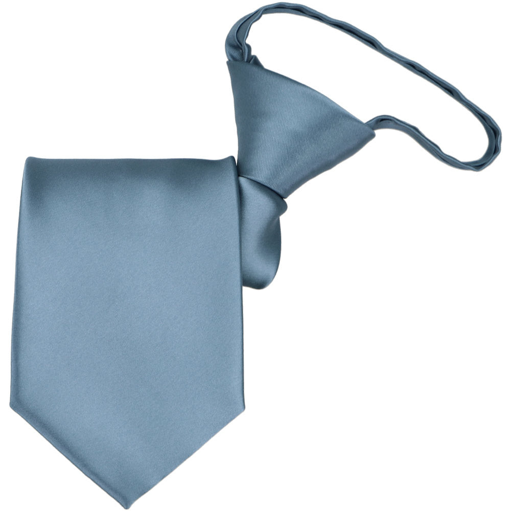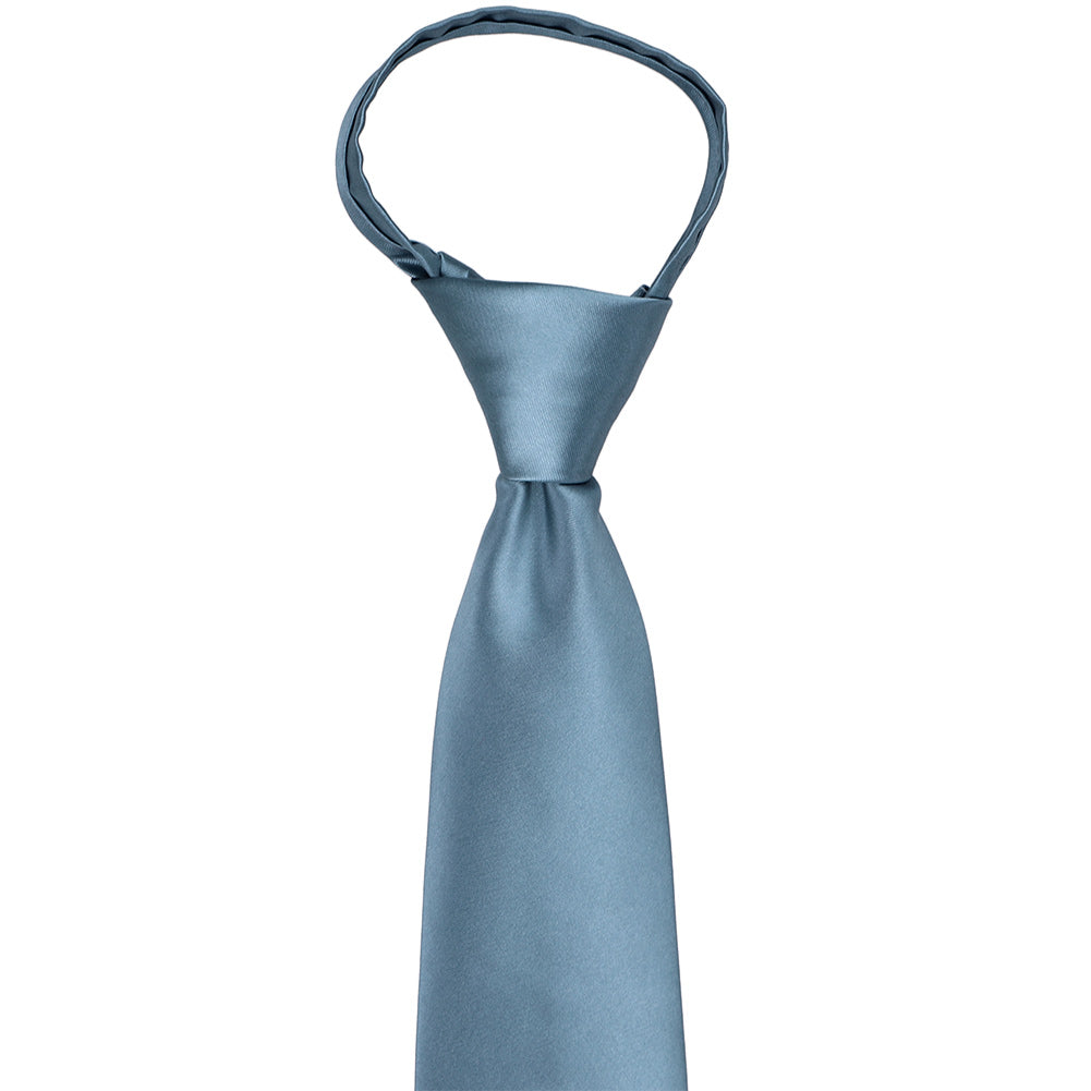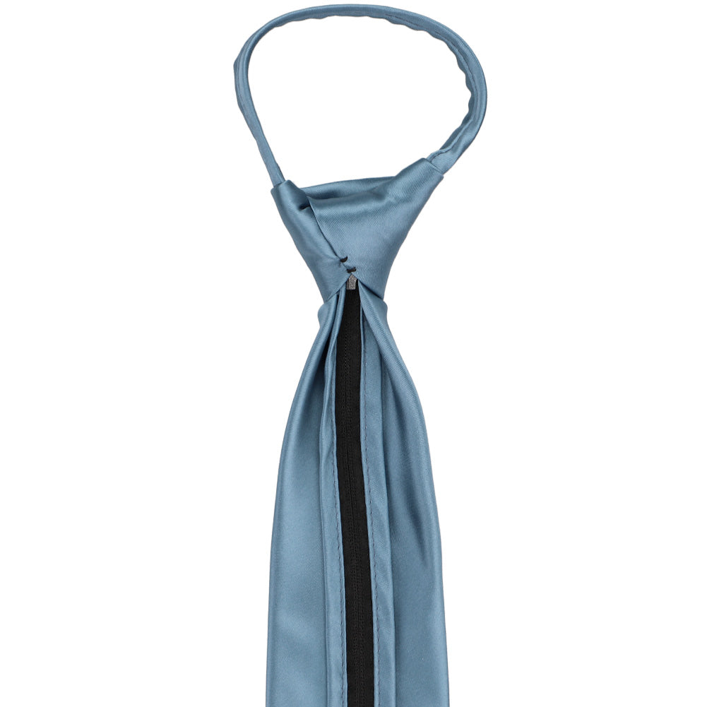 Why tie a tie when you can simply zip it up. This "steel/dusty blue" zipper tie is pre-tied and easy to use (once you know the trick, which we explain in the instructions below). Expand the collar, put it over your head, zip and dance the night away, knowing the tie is staying secure. The not-too-light and not-too-dark color is quite popular for weddings these days. You’ll love how it looks with navy blue or gray groomsmen suits.