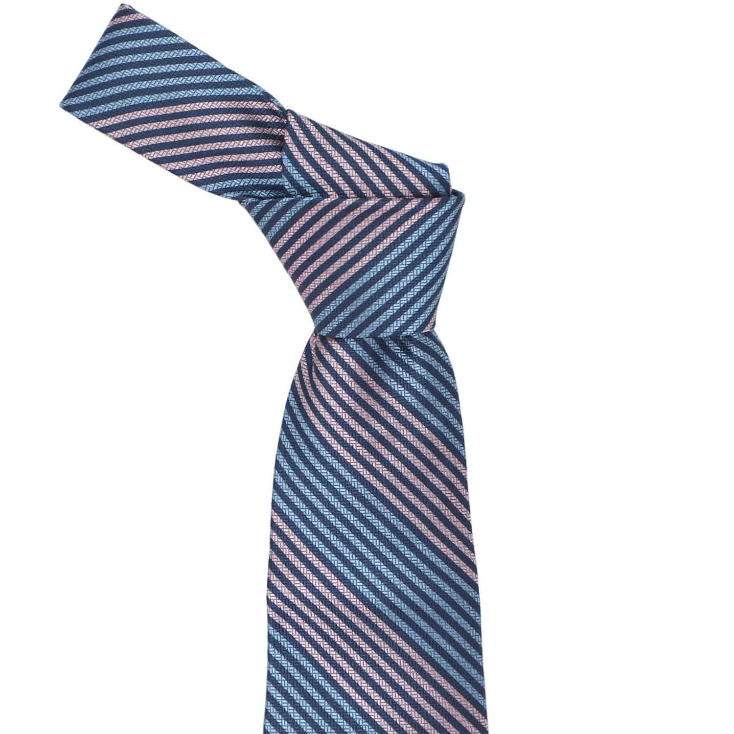 Having a gender reveal party and looking for just the right tie for the occasion? Look no further! A subtle geometric design is overlaid on this pink, blue and navy striped tie. Those lighter pink and blue stripes equally stand out against the darker navy, so it’s perfect for the new dad whose preference is a happy, healthy bundle of joy. Try it with a button down and slacks or a navy blue suit, depending on the formality of your occasion.