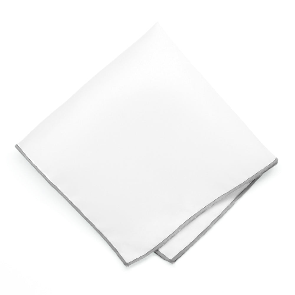Even though it's a neutral, this tipped pocket square sure will stand out. The white pocket square features gray stitching along all four edges. Fold it so those edges peek out of your pocket. (A straight fold will look modern without being too flashy.)