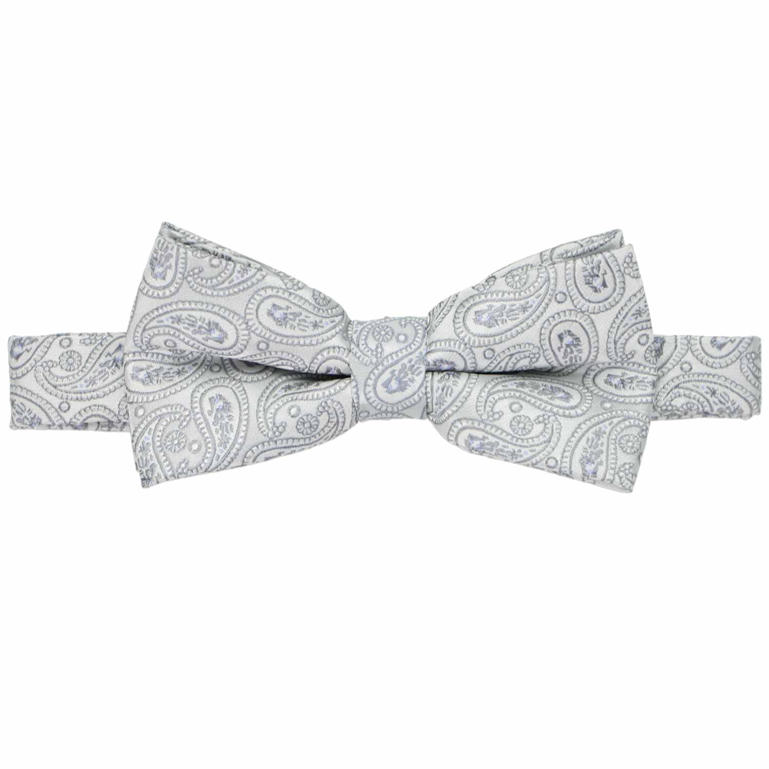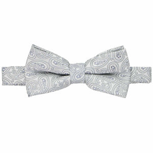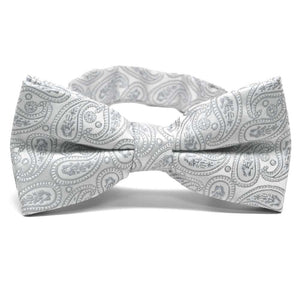 Step into sophistication with a silver paisley bow tie. The perfectly sized paisley pattern and tone-on-tone details offer timeless elegance, making this bow tie a versatile choice for any occasion. Pair it with a black, navy, or dark gray suit for a polished formal ensemble, or opt for gray or black dress pants and a crisp white shirt for a more laid-back yet refined look. Add on the matching pocket square for those formal occasions.