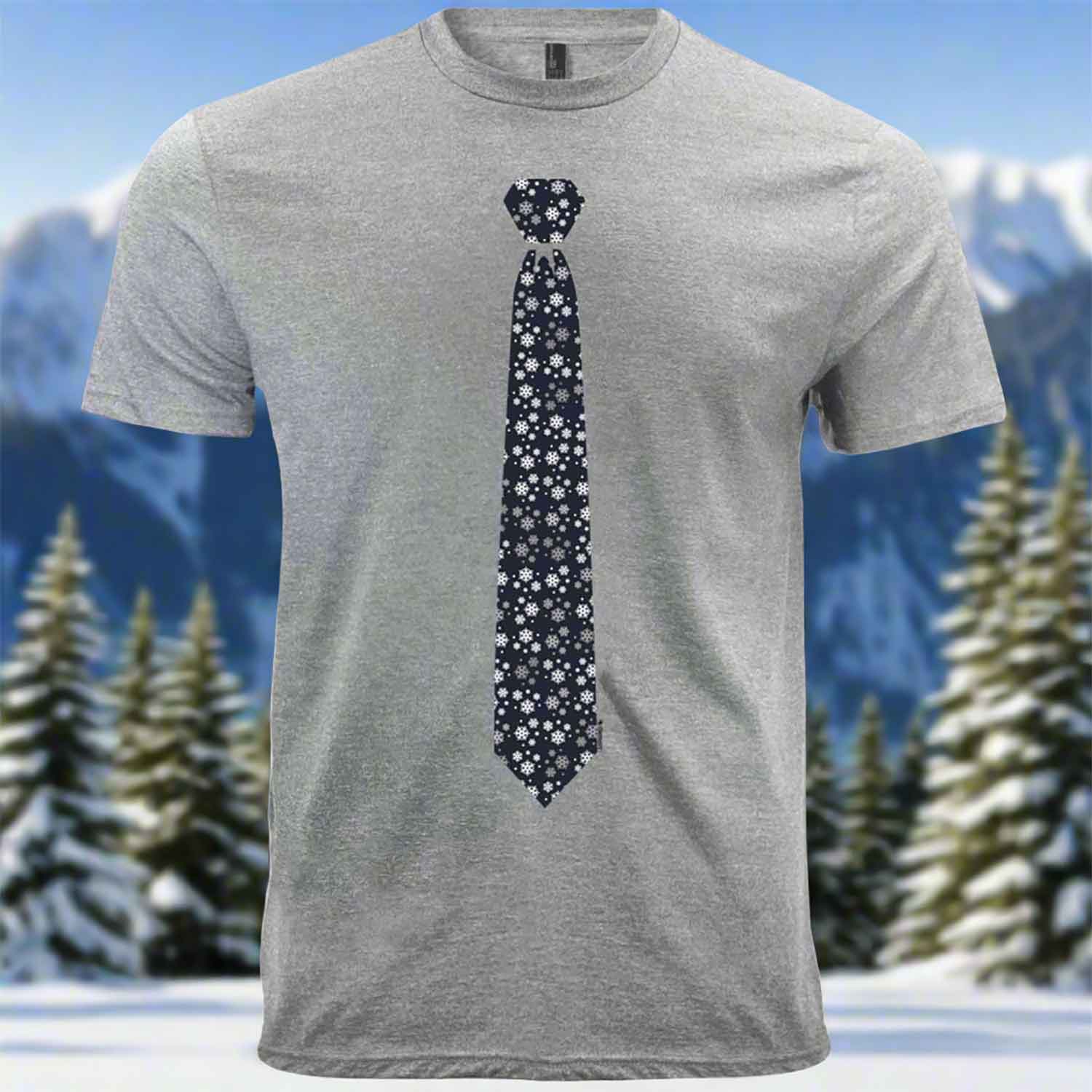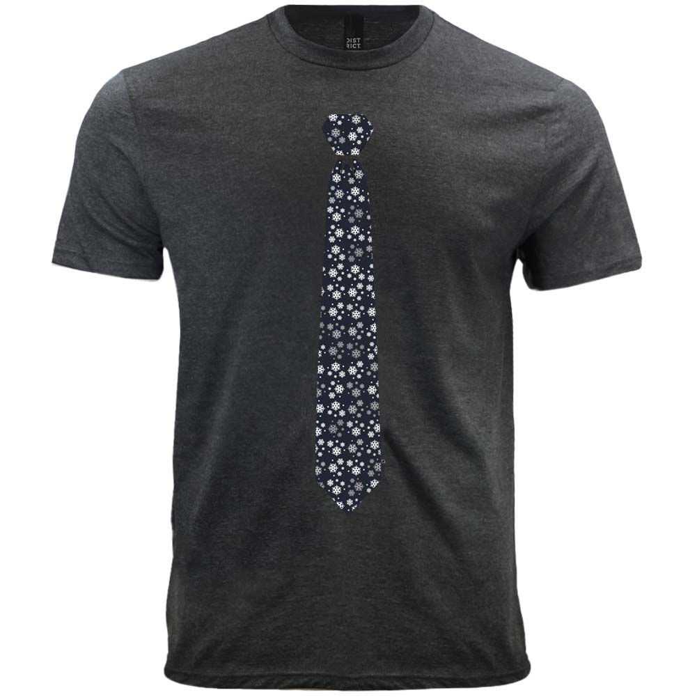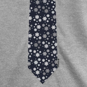 Get dressed up without buttoning up. For fun holiday or winter wear that stays in style after December 25th, pull on this snowflake necktie t-shirt in light or dark gray. Just like real snowflakes, the ones on this novelty tie design are all different. They really stand out against the deep blue background of the printed tie. Wear it while you're relaxing with a cup of hot cocoa or on that winter getaway.